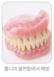 틀니의 장기 사용은 턱뼈의 퇴화를 가져오기도 하지만 자연치아가 없는 빈자리에 임플란트를 심으면 골이 단단해지고 뼈의 흡수가 줄어들어